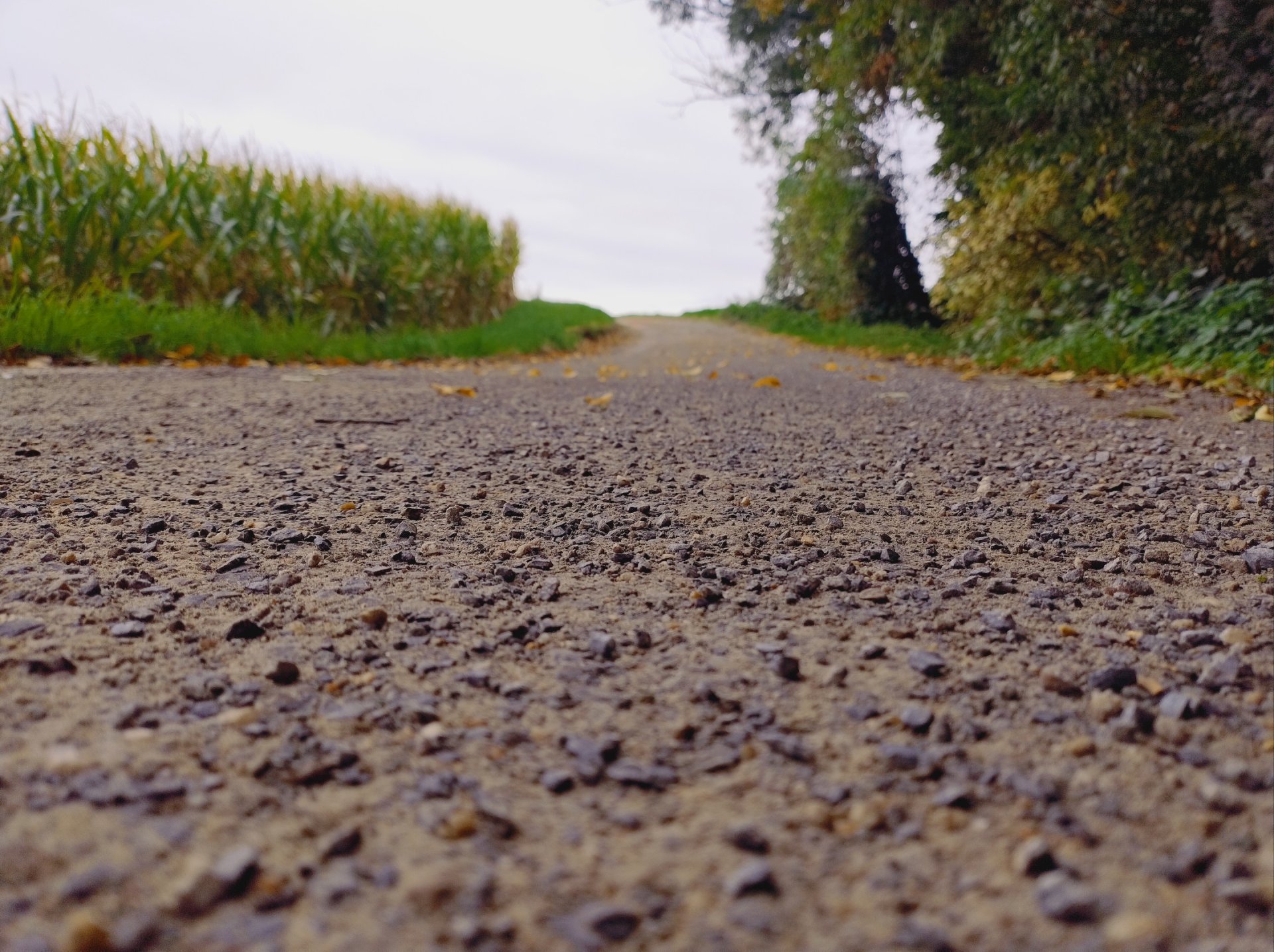 Le nouveau chemin, situé sur une pente menant à la garderie "Kindernest Klein Kauhaus" et se terminant en cul-de-sac, est uniquement emprunté par des agriculteurs et des riverains. Le chemin privé présente une pente allant jusqu’à 8 % et est situé sur une colline. Le défi pour le DurEko-mix BIO ici réside dans le fait que de grandes quantités d’eau de pluie s’y accumulent et ne peuvent s’écouler qu’en descendant le chemin. D’un côté du chemin, le terrain monte fortement, de l’autre, il descend tout aussi abruptement. L’eau ne peut donc pas s’écouler latéralement. Grâce à une inclinaison transversale de 2 à 3 %, l’eau s’écoule le long des bords du chemin vers la vallée.
