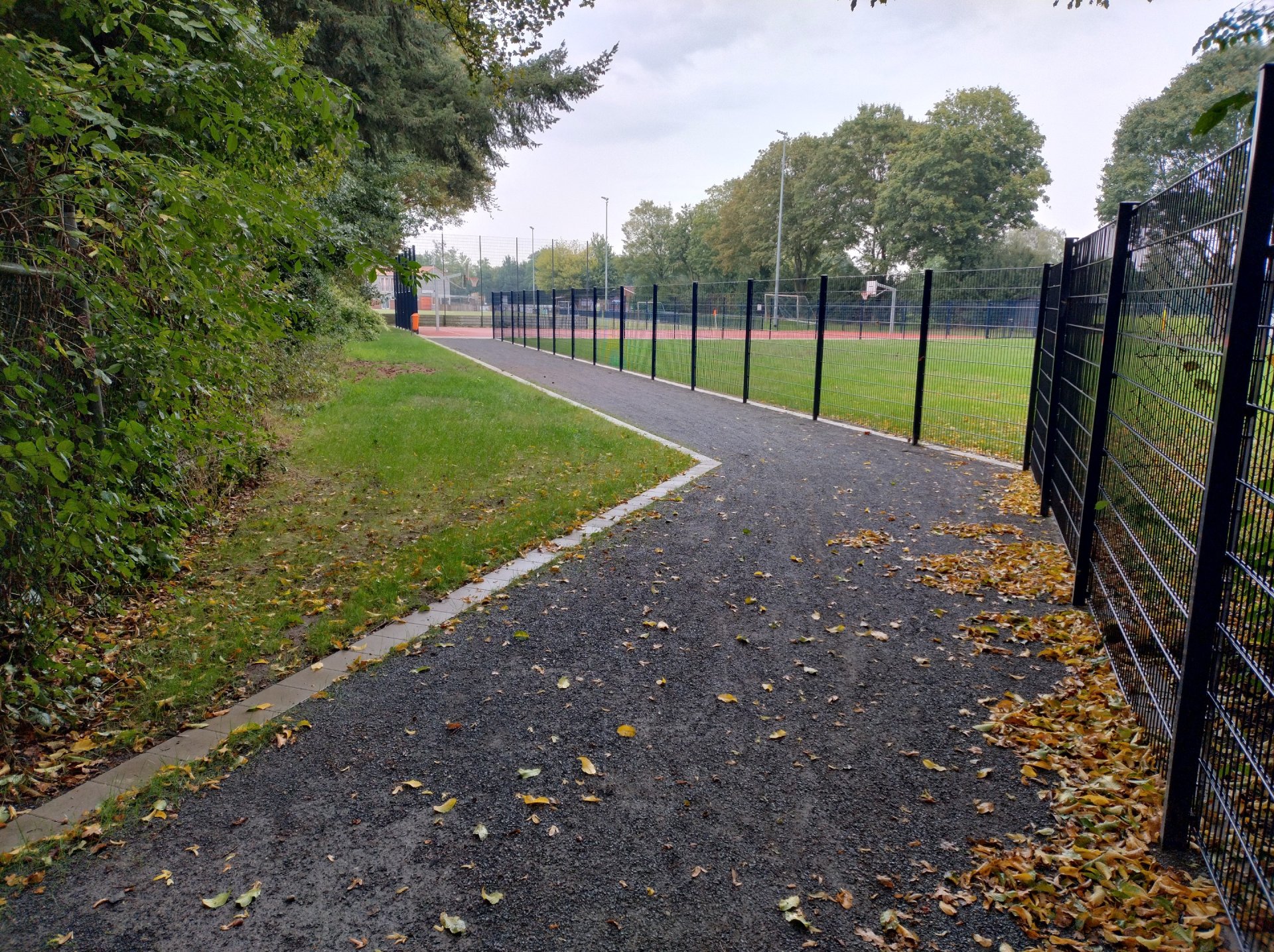 In de zomer van 2025 heeft het bedrijf Werner Lüske uit Haselünne de buitenruimte van sportvereniging "VFL Weiße Elf" in Nordhorn vernieuwd. Vanaf de Euregiostraße tot aan het basketbalveld werd een voetpad aangelegd met een toplaag van KoMex Anthrazit.