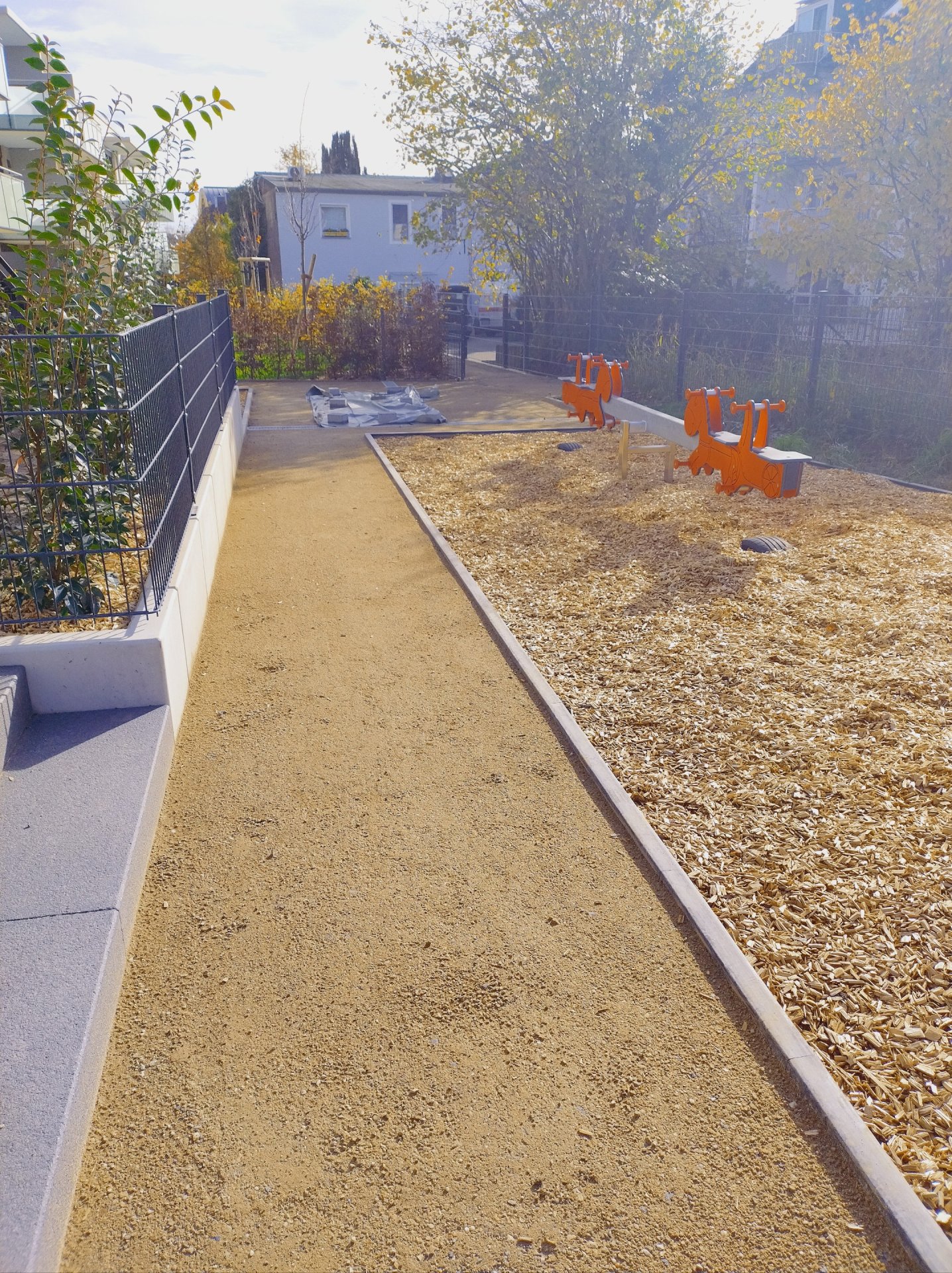 À l’automne 2025, l’entreprise Galabau Rainer Eschbach de Much a appliqué des couches de surface en Koers KoMex Jaune sur plusieurs petites aires de jeux et allées piétonnes dans le nouveau quartier résidentiel de la Uferstraße à Leichlingen. Le quartier comprend 69 nouveaux appartements en copropriété répartis sur cinq bâtiments, à seulement quelques centaines de mètres de la Wupper et du centre-ville.