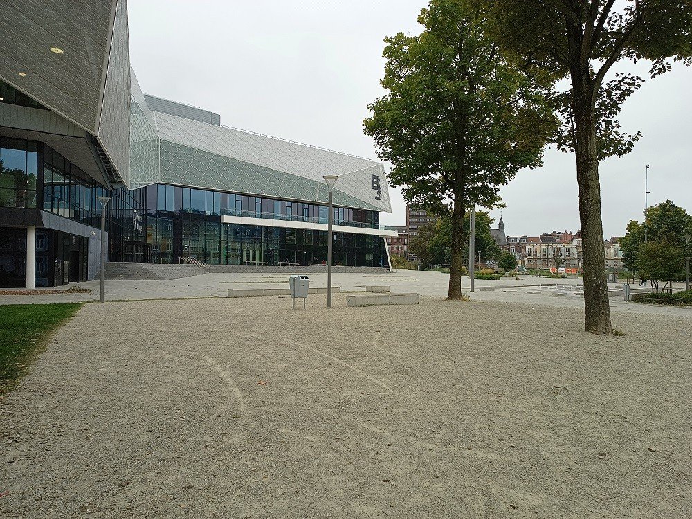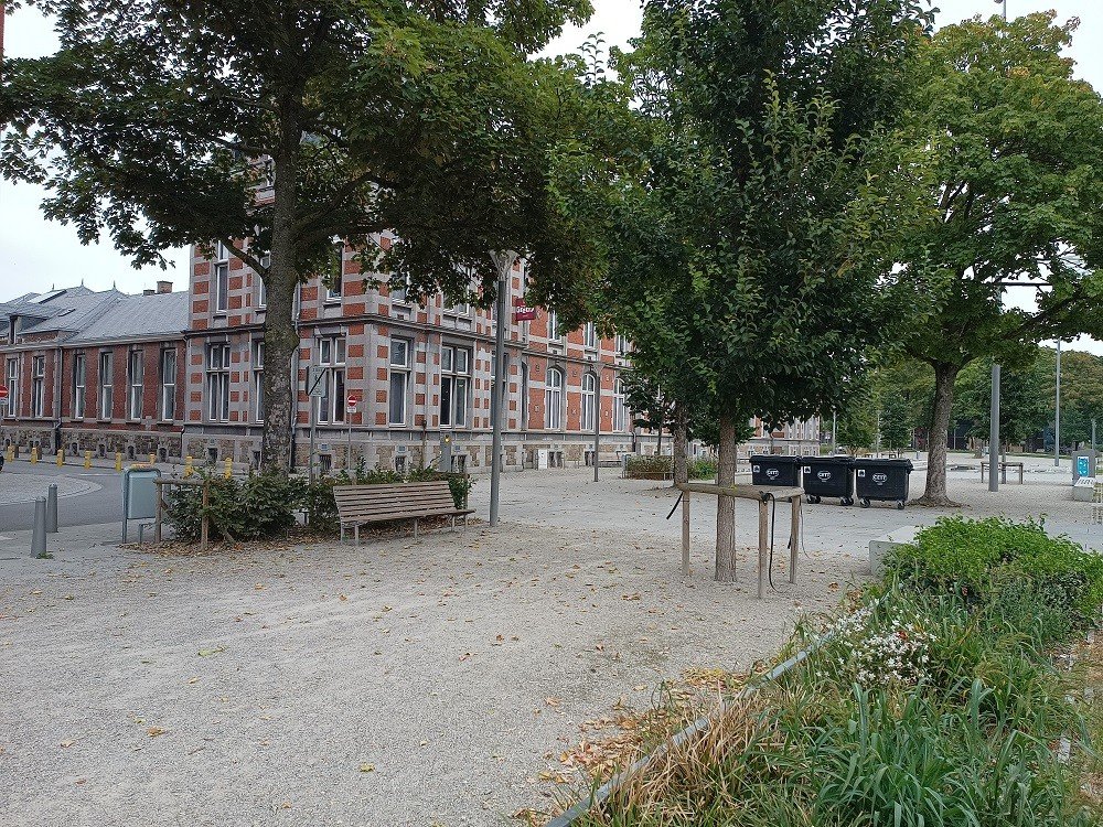 Le trottoir a été posé avec KoMex BIO natural, autour des arbres une version extra perméable de KoMex a été installée.
