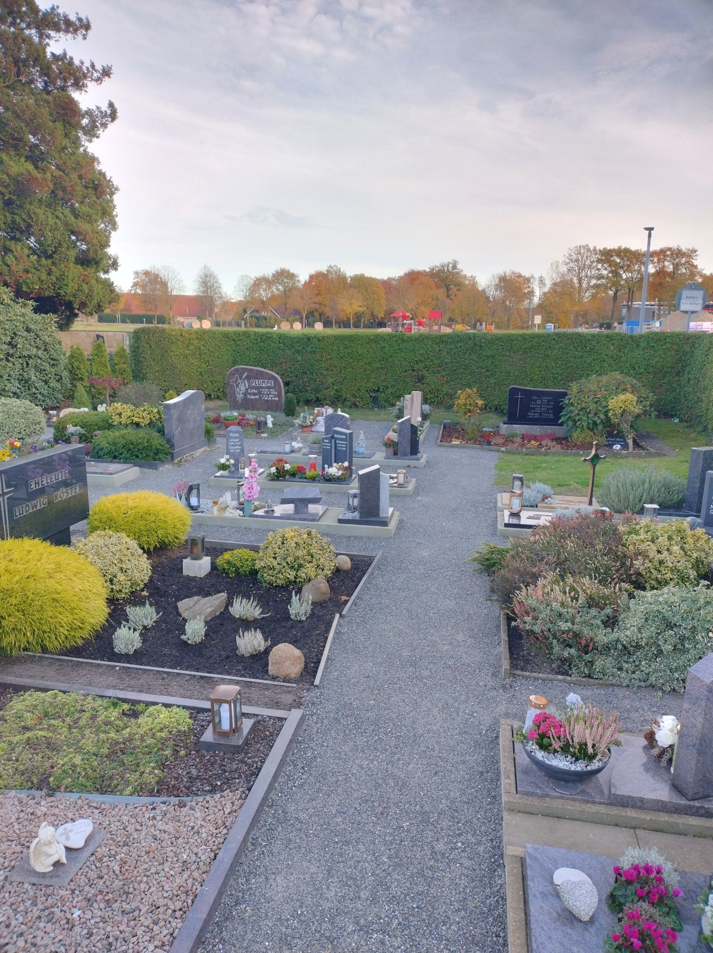 De begraafplaatsaanlegger van het bedrijf Seveneick heeft in september in de zuidoostelijke hoek van de begraafplaats in Hörstel de zones tussen de graven verhard met Koers DurEko-mix. Het resultaat oogt zeer charmant. De grijze kleur van de toplaag sluit mooi aan bij de randafwerkingen van de paden en de graven. De kleuren van de bloemenarrangementen, kaarsen en andere decoraties die bezoekers uit liefde voor hun overleden dierbaren hebben meegebracht, trekken de aandacht en geven het geheel een warme, emotionele sfeer.