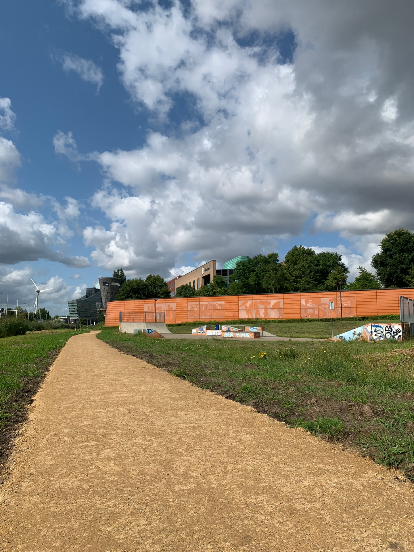 Achter de gebouwen/kantoren slingert een zorgvuldig aangelegd pad, omringd door weelderig groen dat in elk seizoen een andere sfeer neerzet. Aan de rand van het wandelpad ligt zelfs een kleine stadswijngaard, een onverwachte oase die het gebied een bijna mediterrane charme geeft. Het is een plek die uitnodigt om tijdens een pauze even naar buiten te gaan, een frisse neus te halen en in alle rust te wandelen.