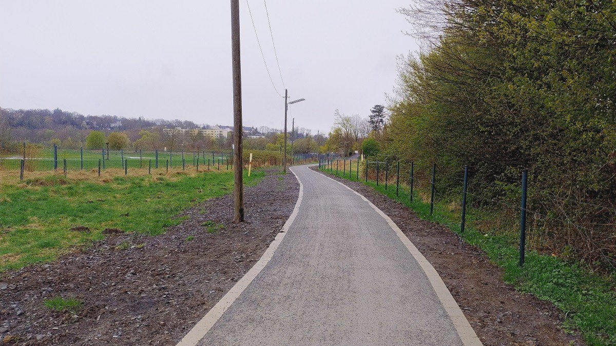 De firma Schemel & Co. Asphalt- und Straßenbau GmbH uit Essen heeft in de winter van 2026 het halfverharde fietspad tussen de Kurt-Schumacher-Brücke en de bushalte Langenberger Str./Drehscheibe volledig vernieuwd.